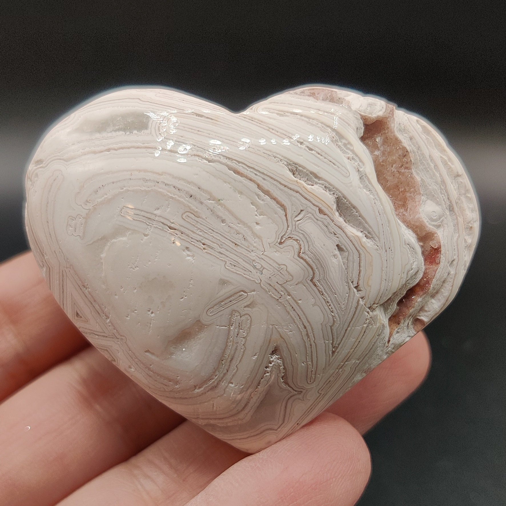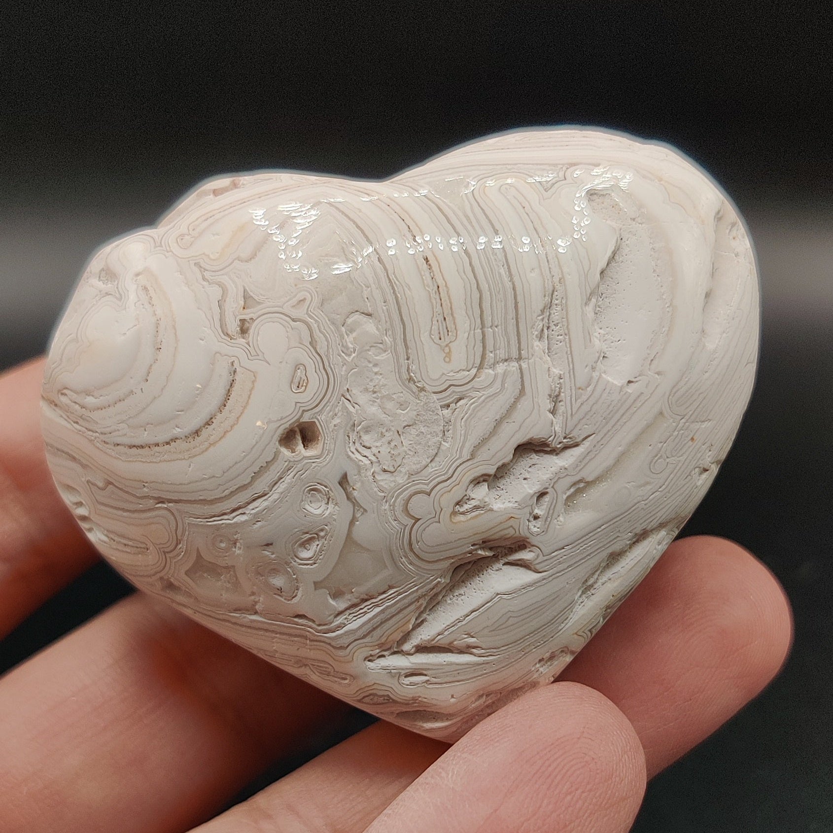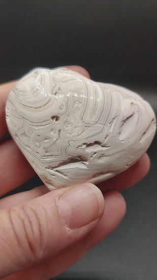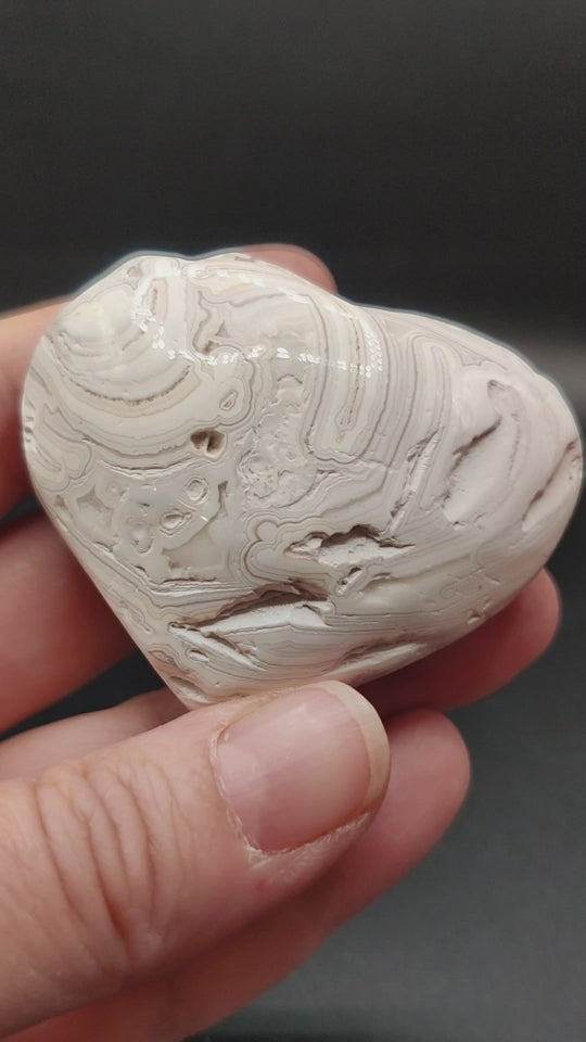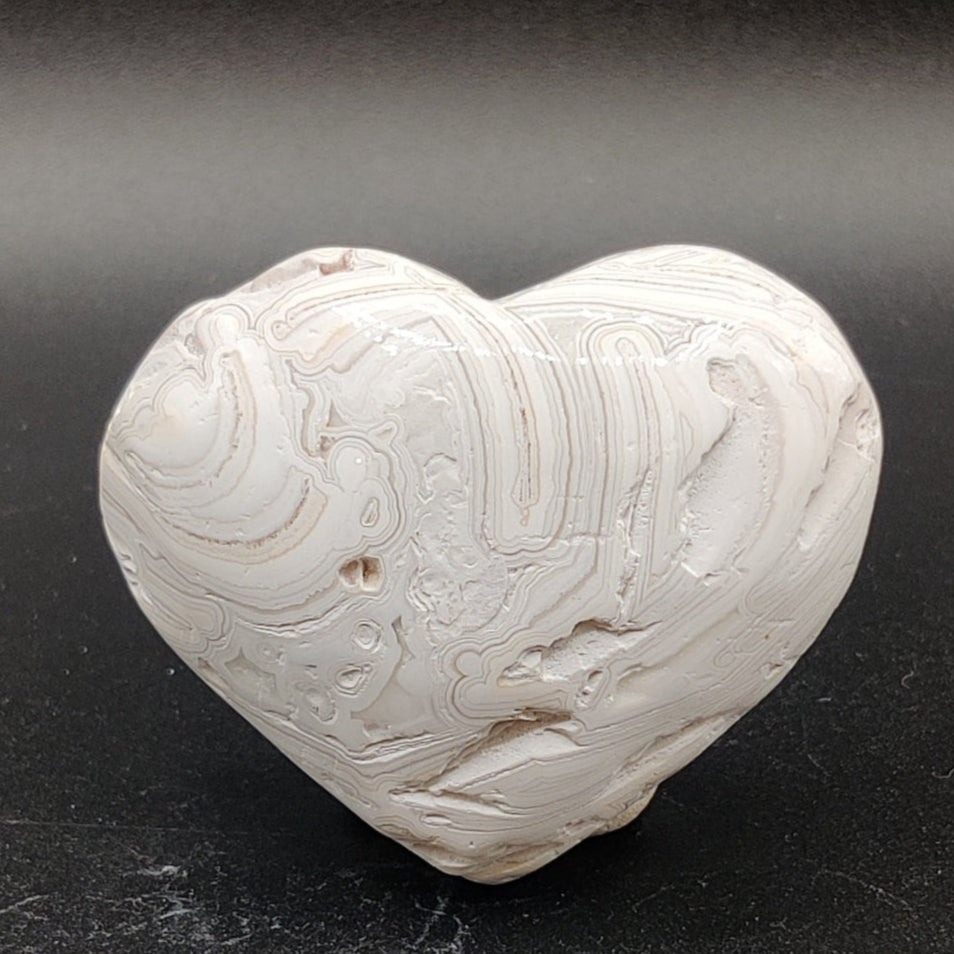 Corazón tallado a mano de ágata de "encaje loco" también llamada "Crazy lace agathe".