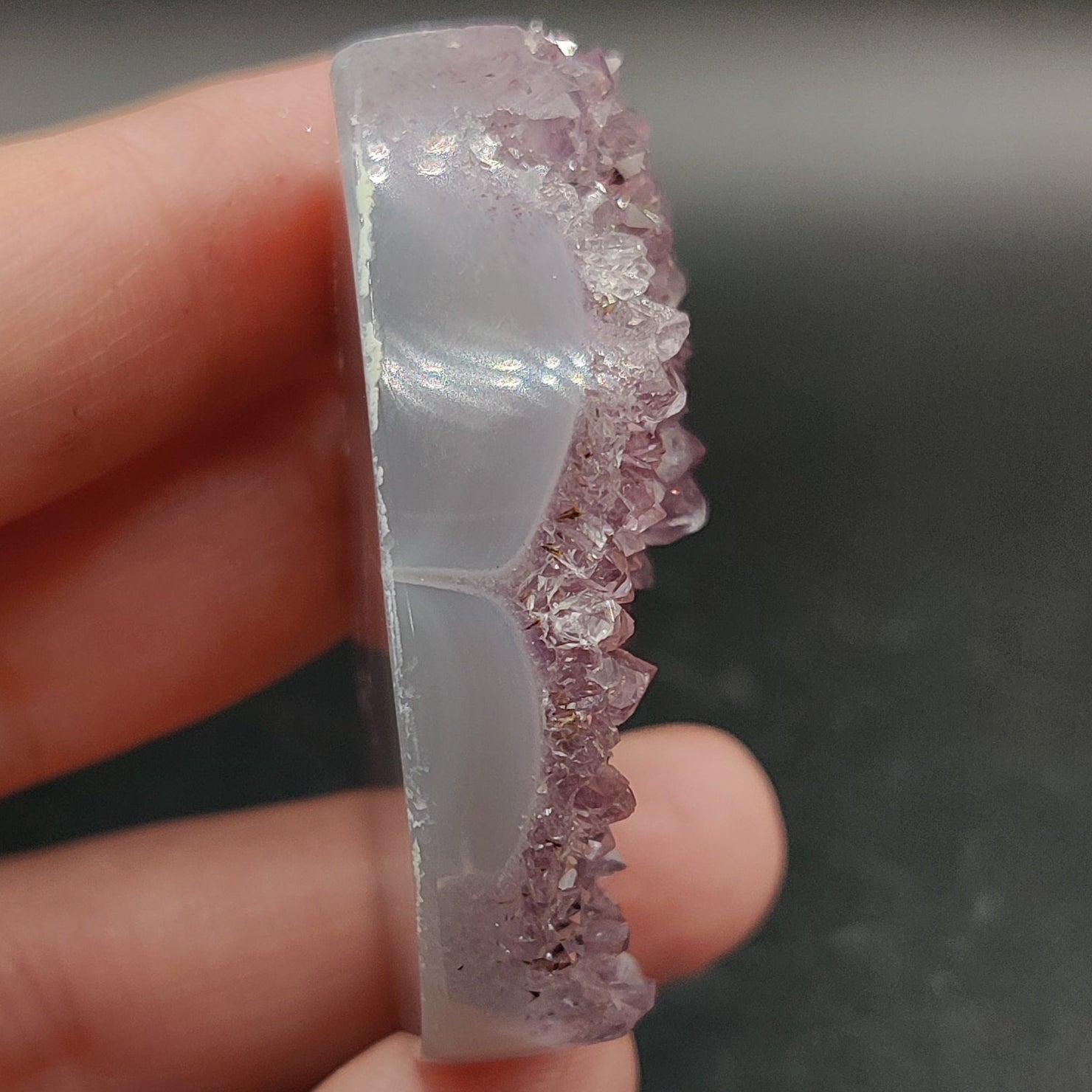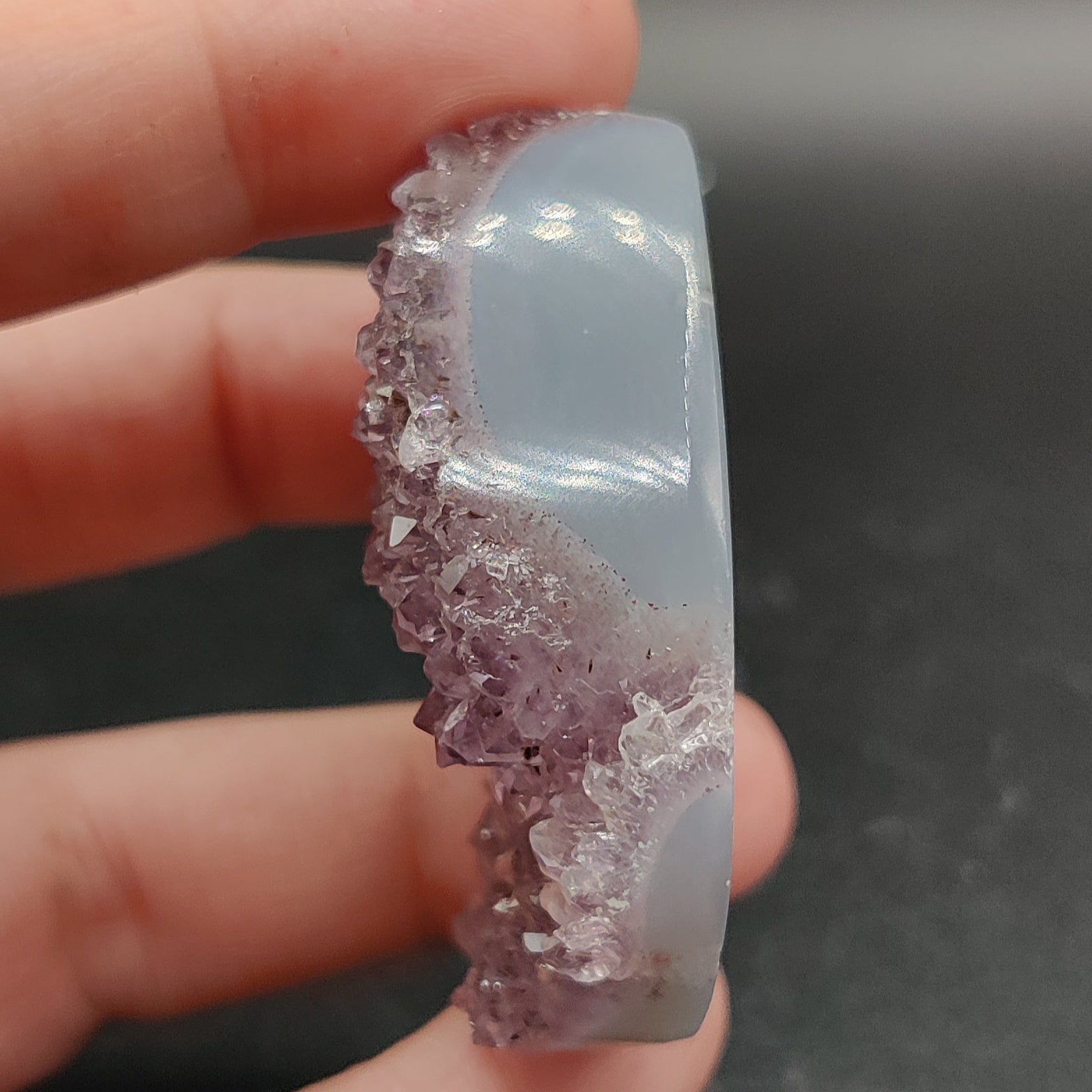 Amatista con ágata tallada en forma de gota
