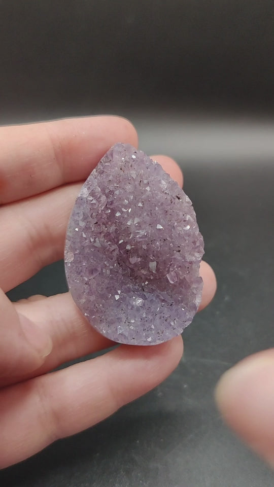 La amatista conecta con el centro energético del tercer ojo y la corona. Ha sido utilizada desde la antigüedad relacionándola con la espiritualidad, la intuición y la conexión interna. Por su color lila a veces violeta, es asociada a acompañar en momentos de transmutación y cambios.