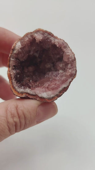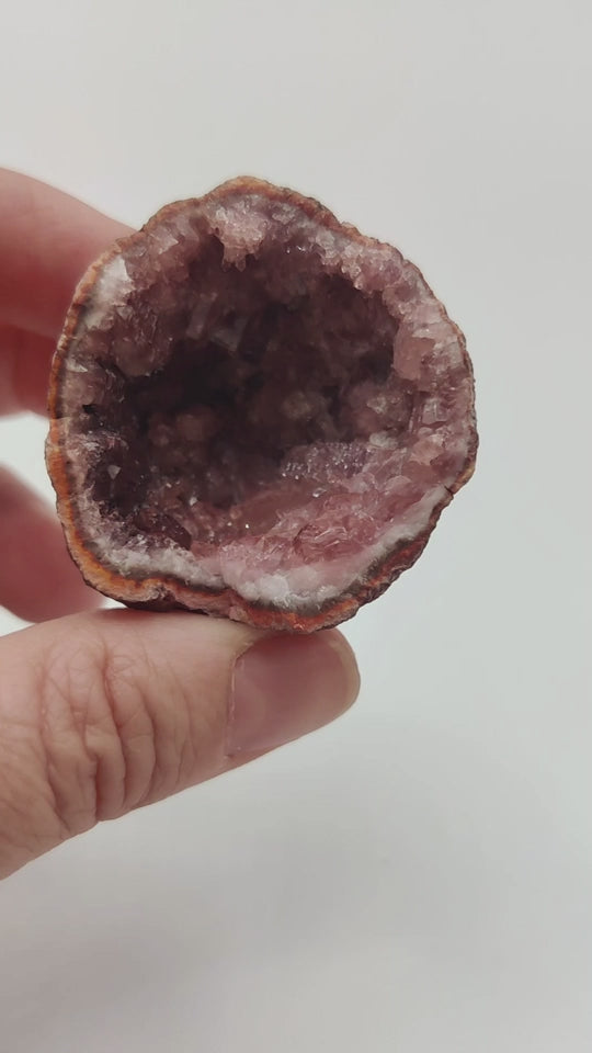 Geoda de amatista rosa de gran belleza, con cristales brillantes y bien formados. Esta pieza tiene un tamaño muy grande, teniendo en cuenta el tamaño que suelen tener estas piezas.