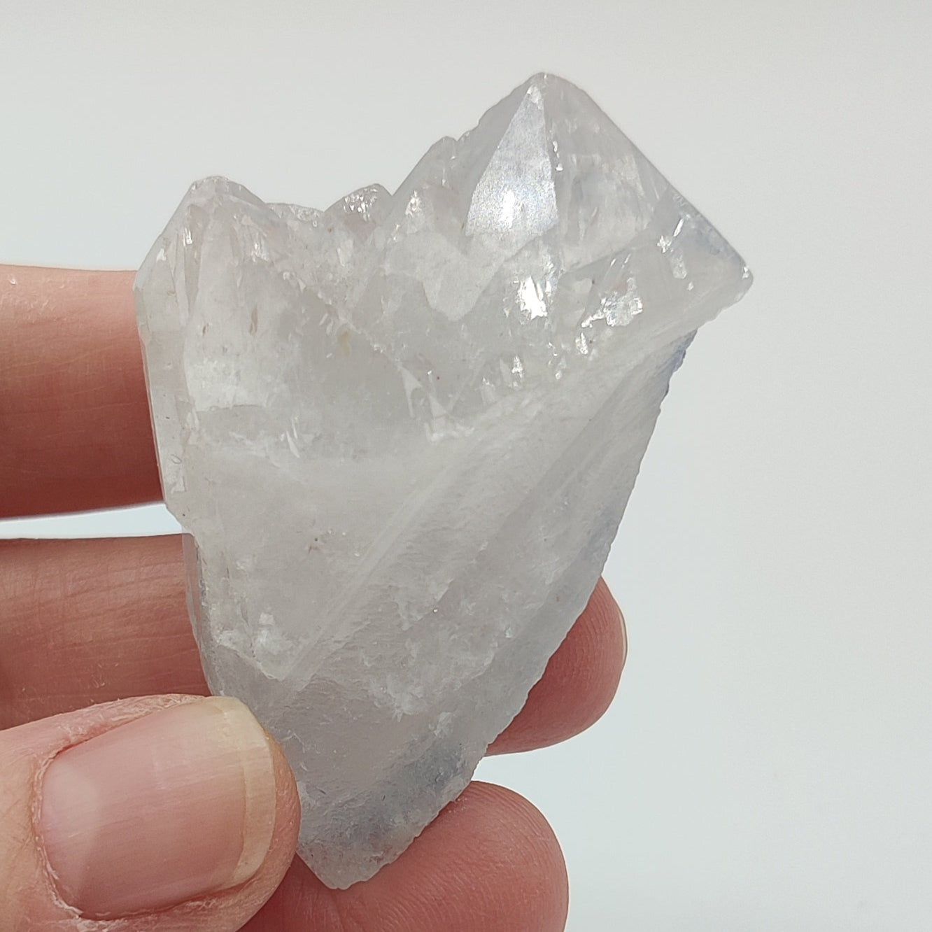 Cuarzo terminado en multipunta con numerosos mini cristales de dumortierita color azul intenso, en el lado contrario a la punta.