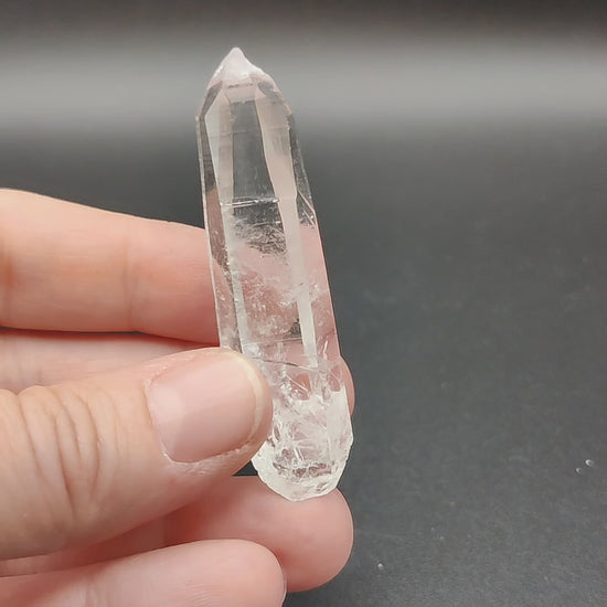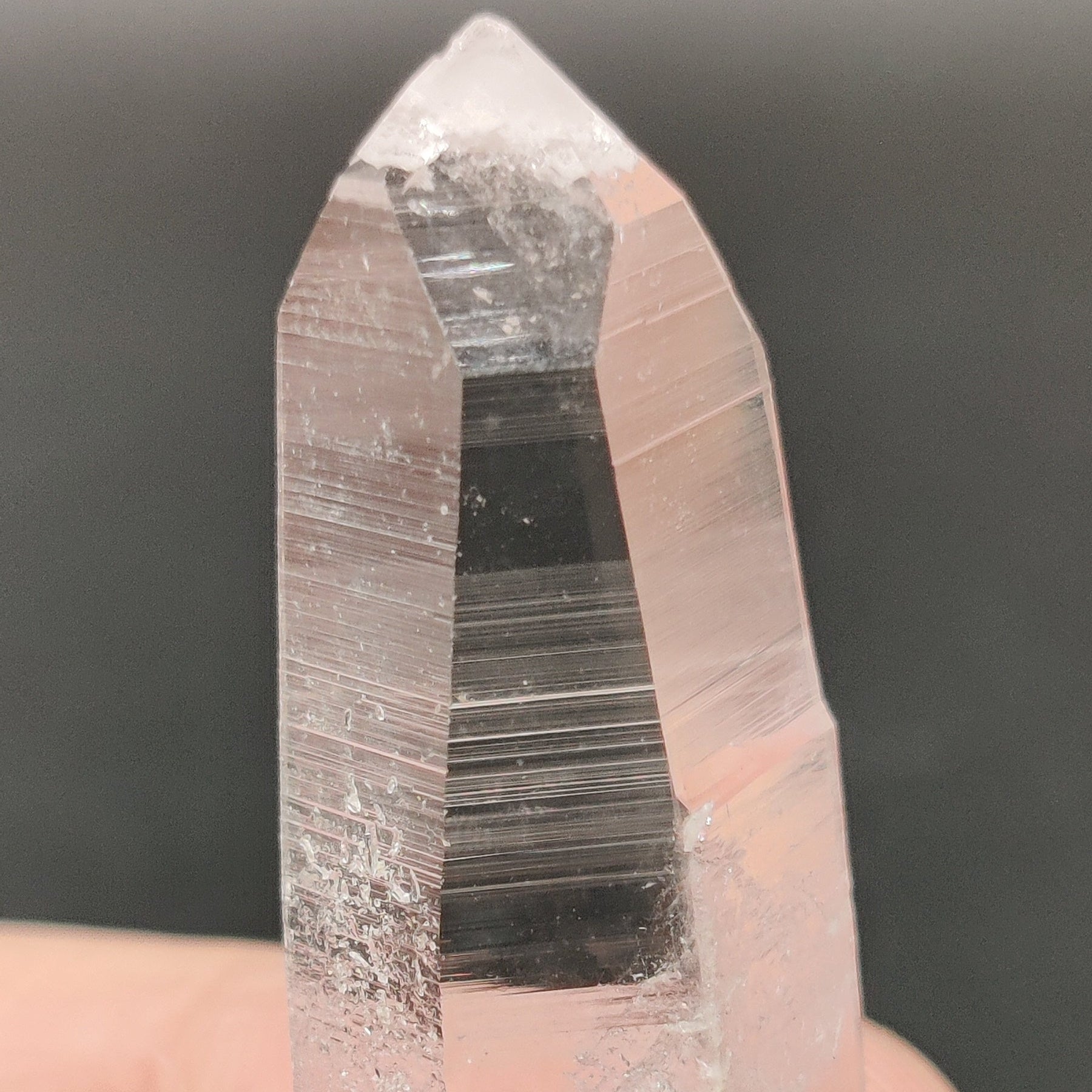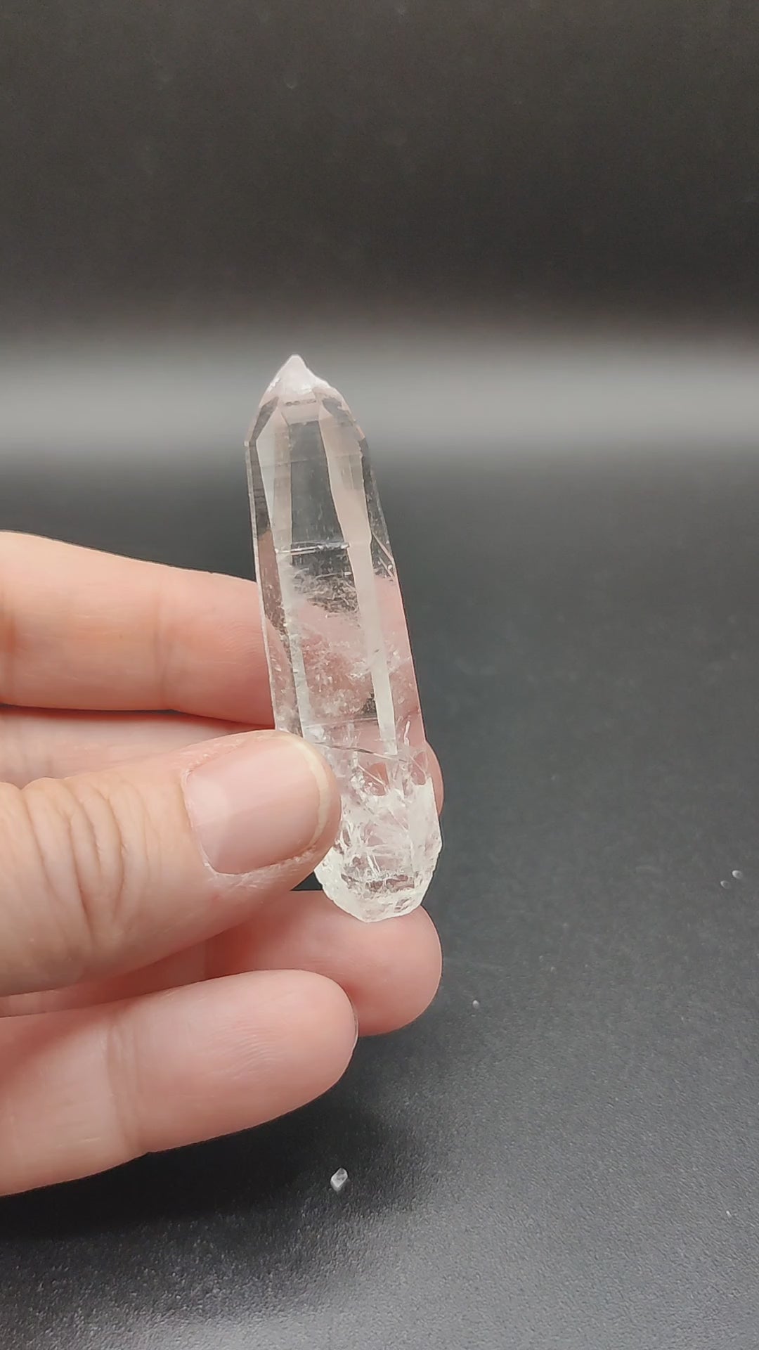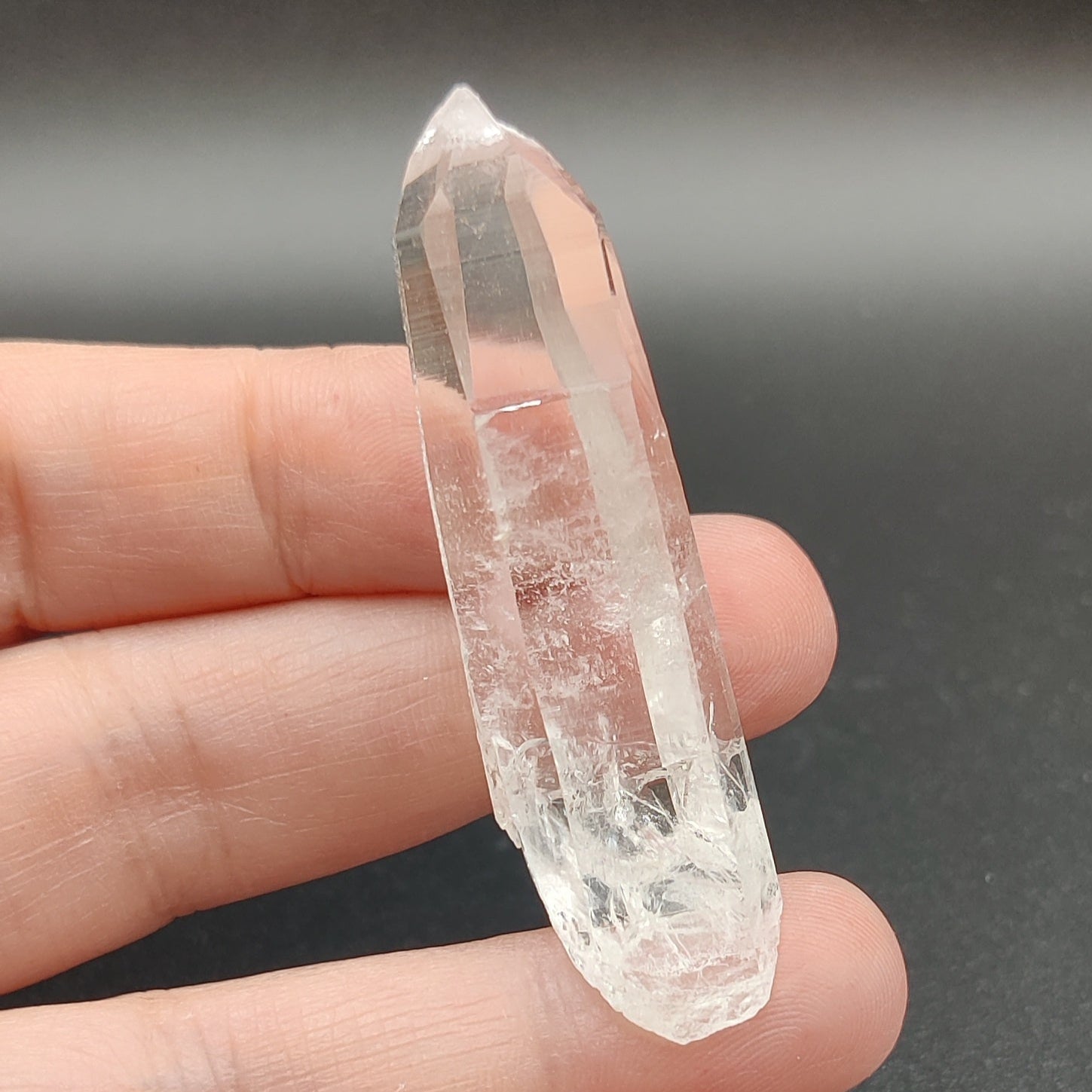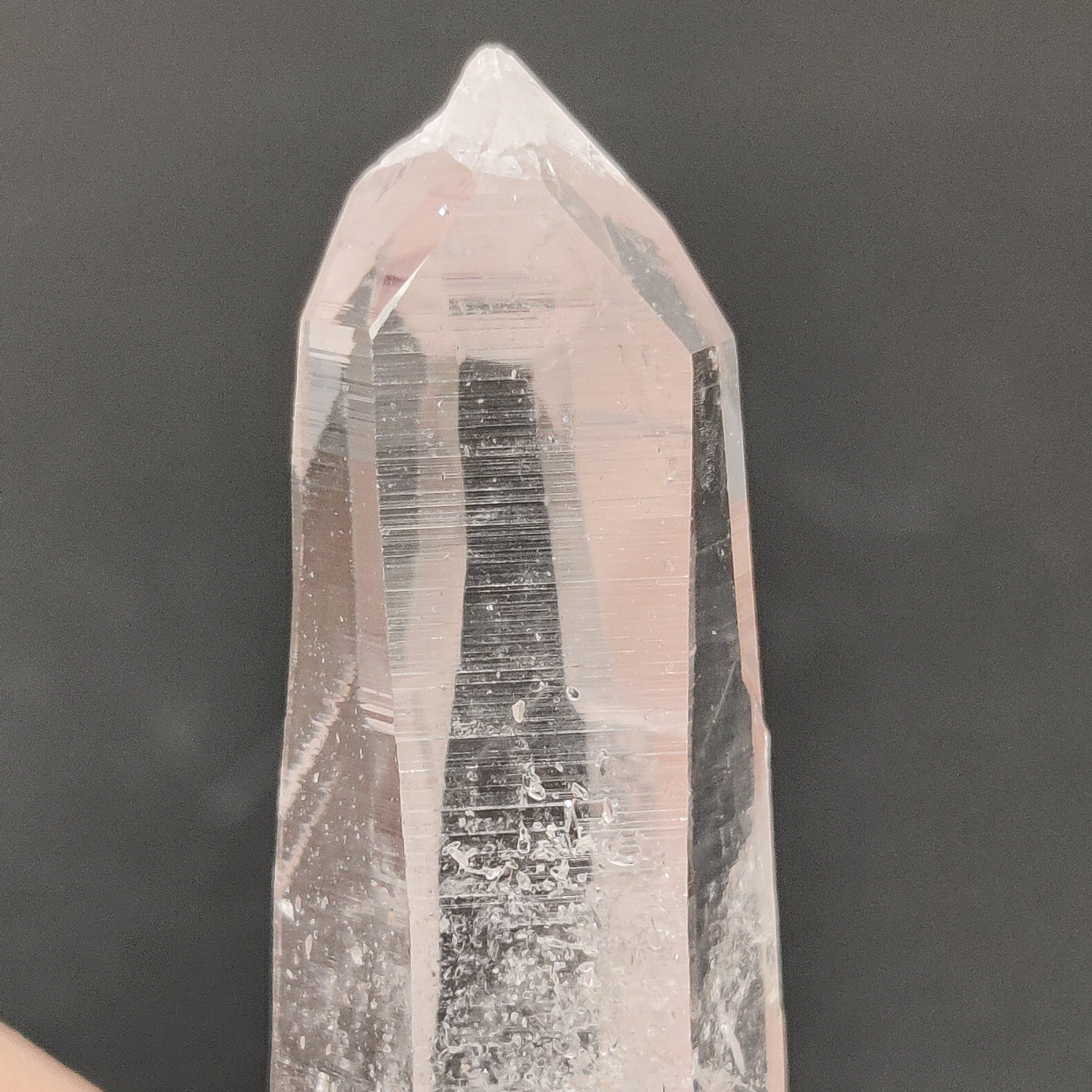 Punta individual con hábito muzo de cuarzo láser lemuriano. Muy transparente y con inclusiones.