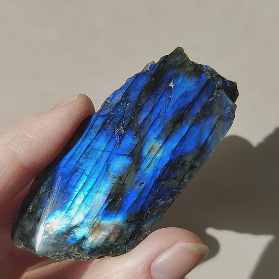 La labradorita es un mineral asociado al desarrollo de la intuición y la creatividad. Muy utilizado en meditación ayuda a la expansión de la energía y apertura de mente; posicionándonos en un lugar de validación y reconocimiento internos.