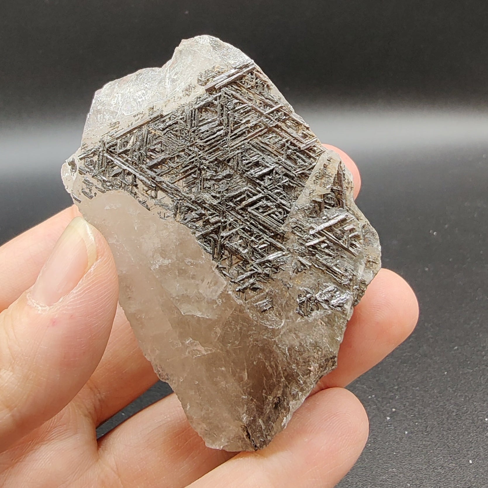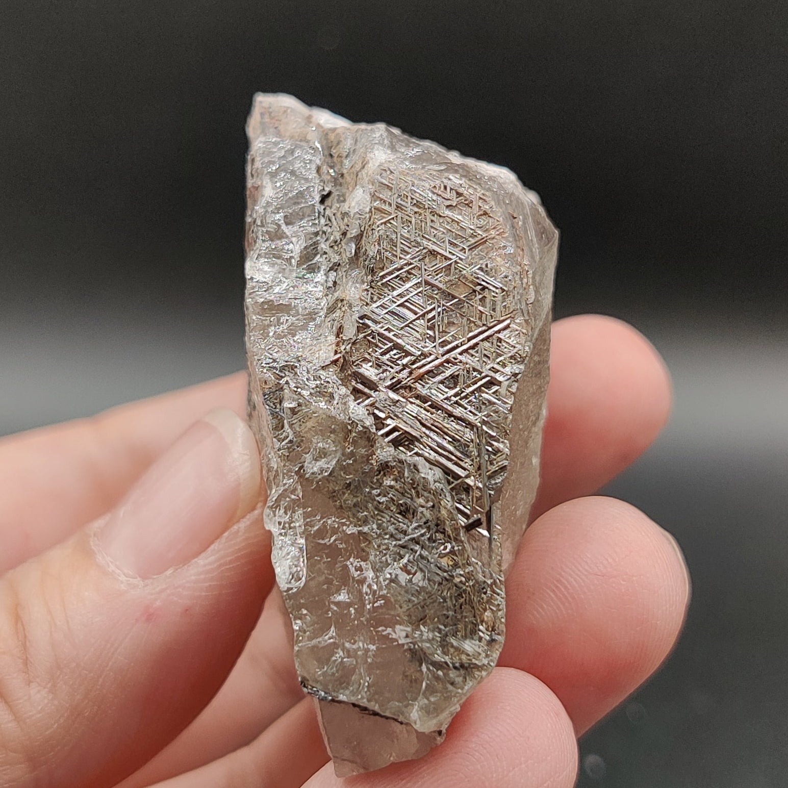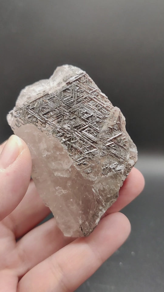 Rutilo cristalizado en forma de red (cristales gemelos) sobre matriz de cuarzo transparente.