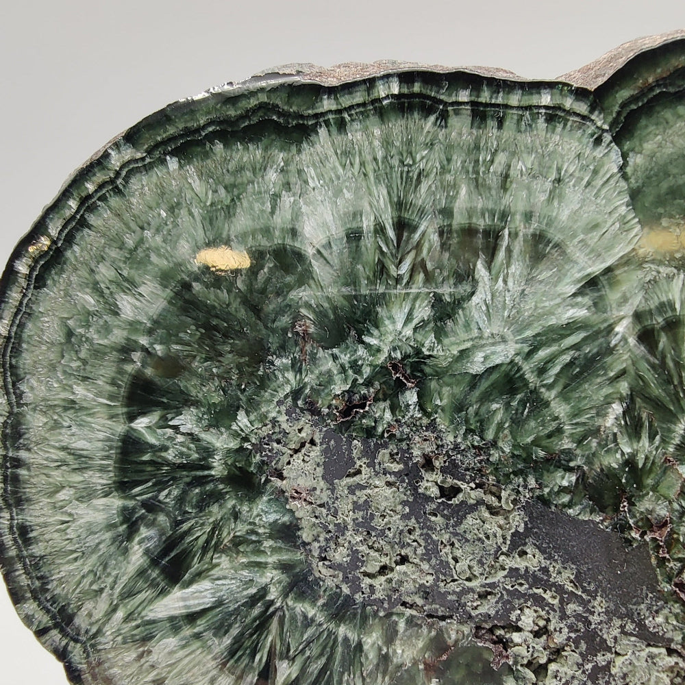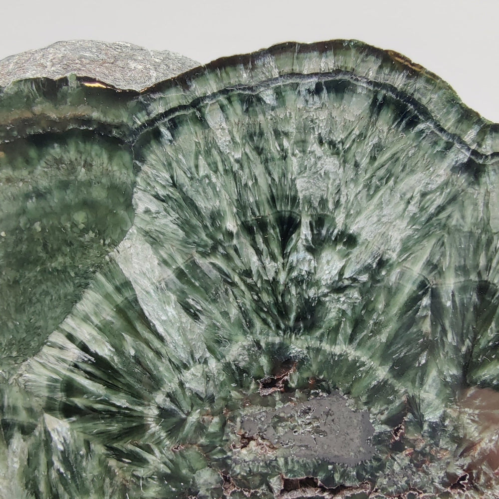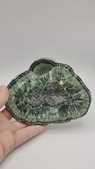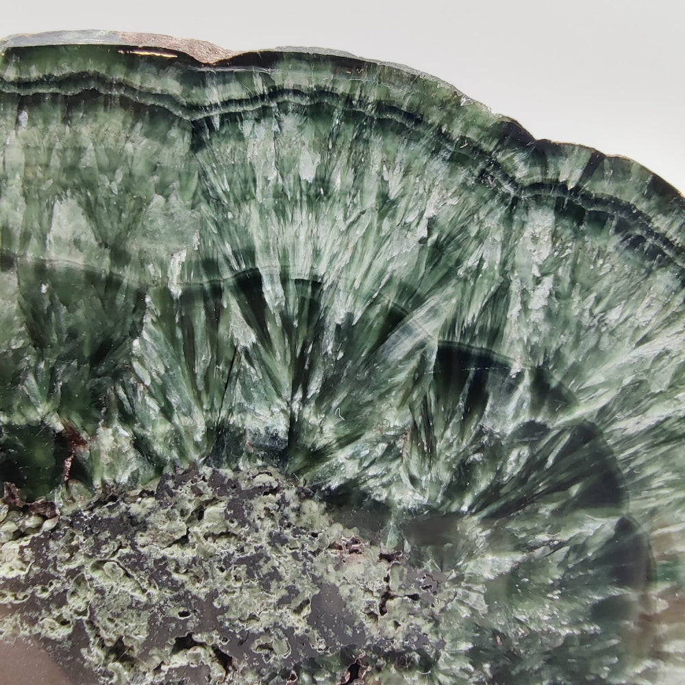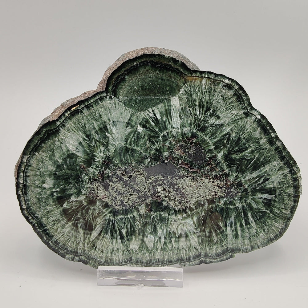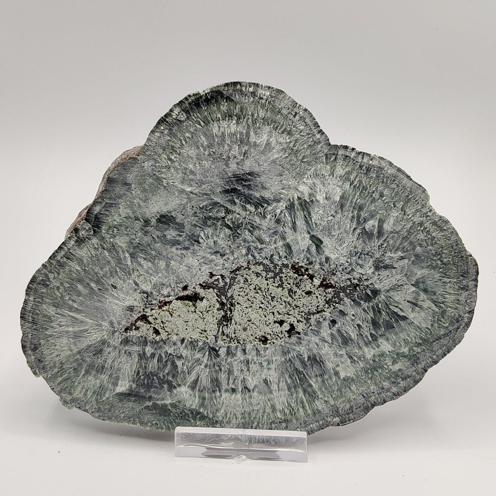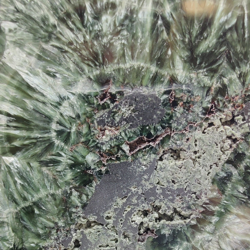 Placa de serafinita con hematites, pulida por ambas caras, con brillo en una de las caras.